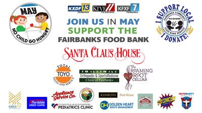 This MAY, your local Gray Stations (KTVF, KXDF and KFXF) invite you to participate in MAY No Child Go Hungry - benefitting the Fairbanks Community Food Bank. Help local kids and families by bringing non-perishable food items or making a monetary donation. Every contribution stays right here in our community and makes a meaningful impact. Presented by Santa Claus House.