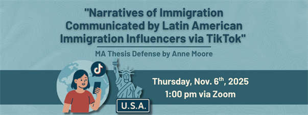 • "Narratives of Immigration Communicated by Latin American Immigration Influencers via TikTok" Anne Moore MA Thesis Defense